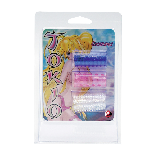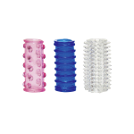 Sada tří barevných návleků na penis.