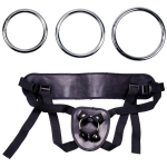 Kožený nastavitelný popruh včetně tří vyměnitelných kruhů v průměru 4, 5 a 6 cm – tedy kompatibilní s téměř jakýmkoliv typem vibrátoru (vibrátor není součástí balení). Barva černá